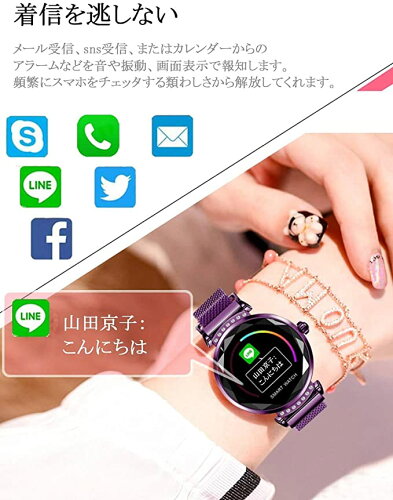 【女性向け機能搭載・着信通知】設定することで、電話、テキストメッセージ、Eメール、LINEなどのアプリケーションがあるときに、バイブレーションや情報による通知を表示できます。